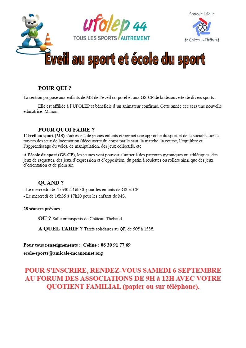 Rentrée 2025 Eveil et Ecole de sports