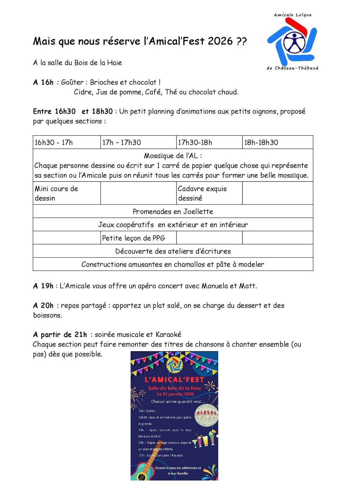 Votre Amical'Fest du 31 janvier en détail